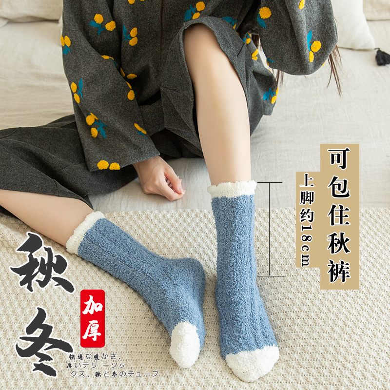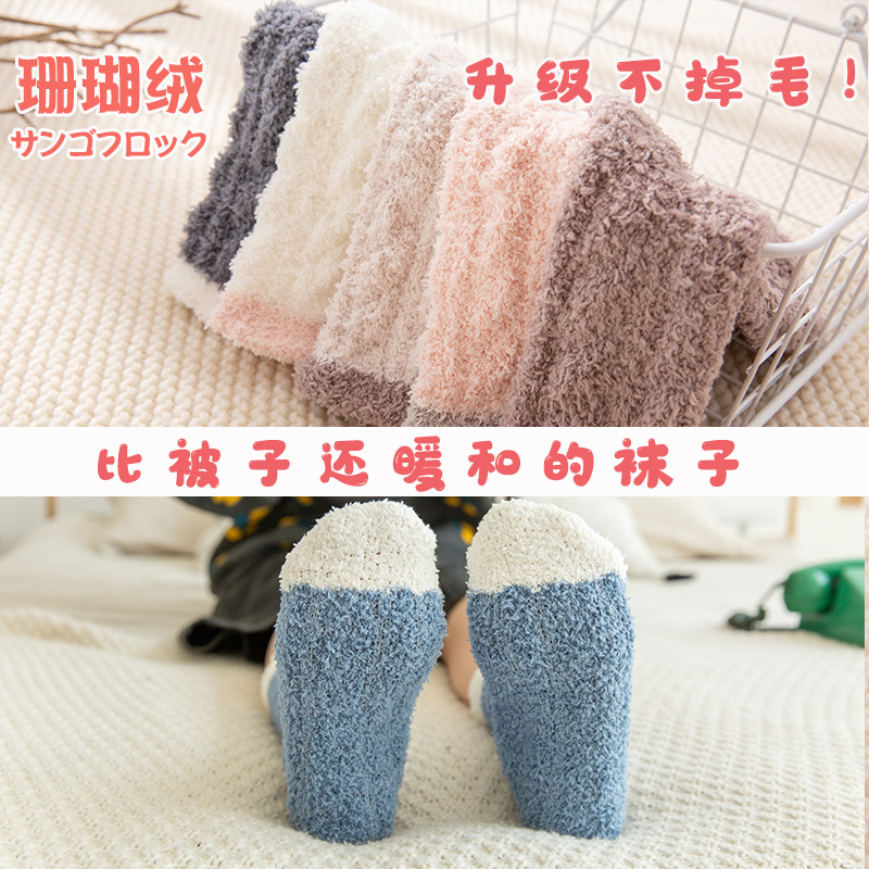 珊瑚绒袜子女孕妇保暖不掉毛长袜防臭吸汗睡觉睡眠袜月子袜长筒袜