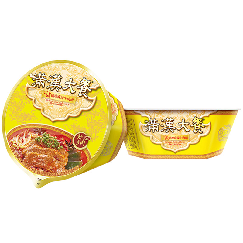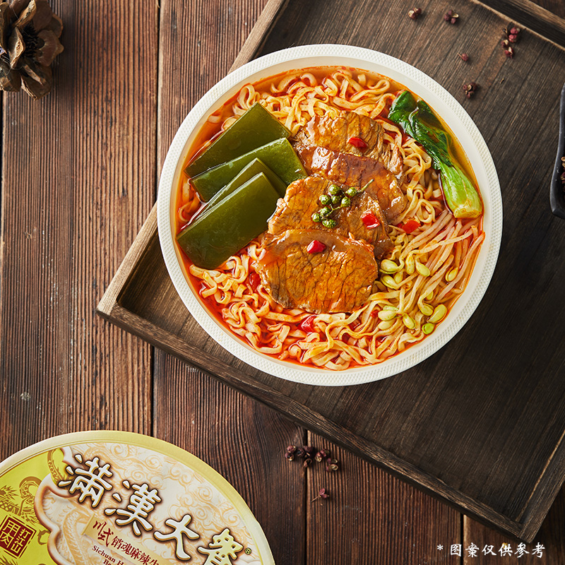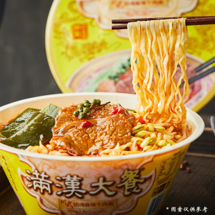 满汉大餐川式 方便面条整箱批发早餐夜宵速食品 麻辣牛肉泡面桶装