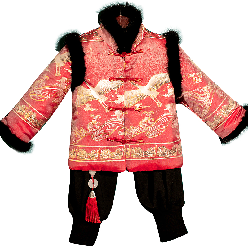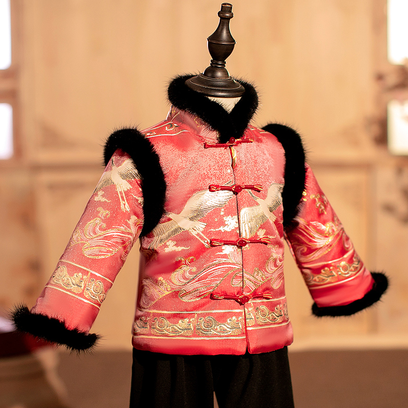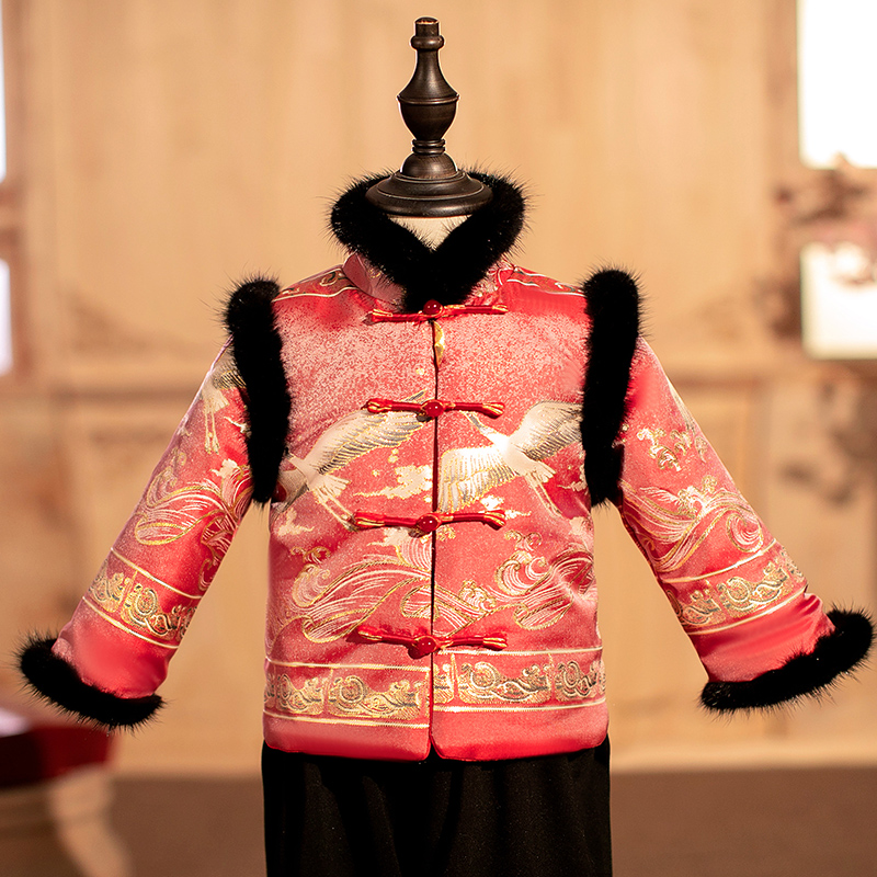 过年衣服 汉服儿童喜庆唐装 拜年服男童红色加绒加厚套装 中国风古装