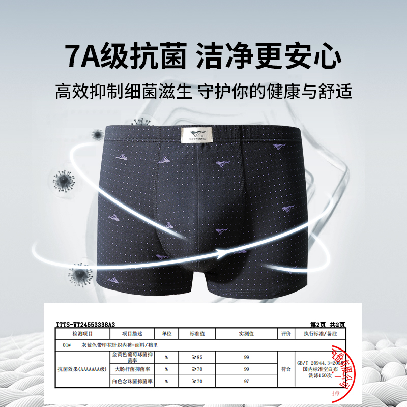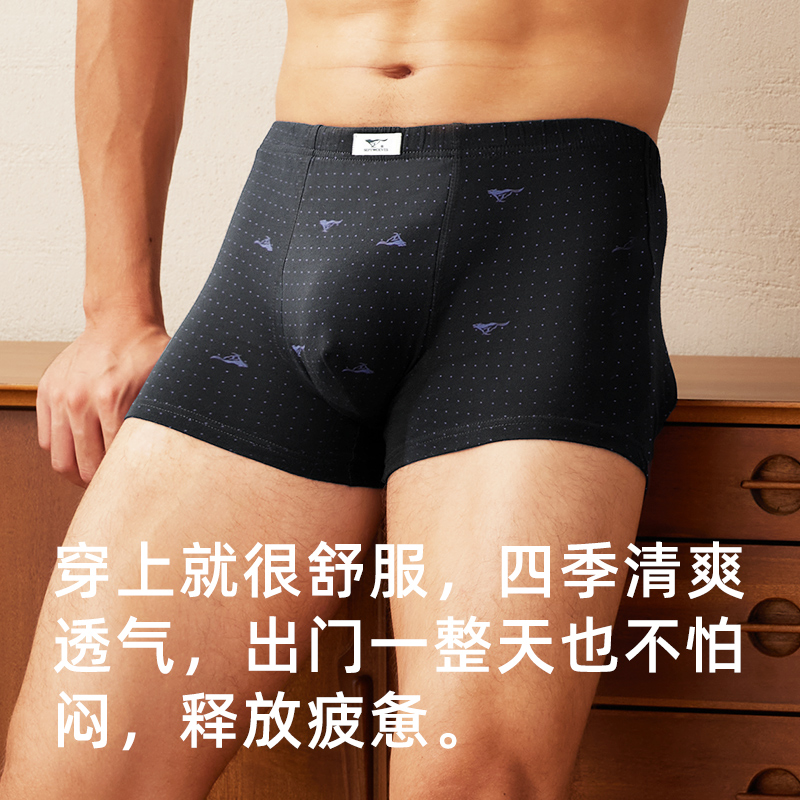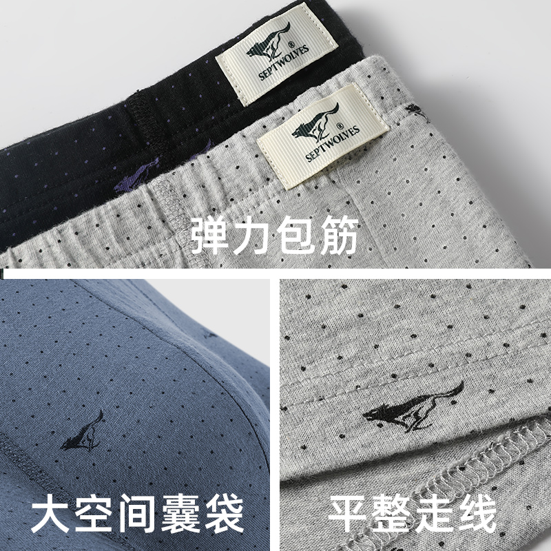 头透气抗菌中老年宽松加大码 七匹狼男士 纯棉四角短裤 男款 平角 内裤