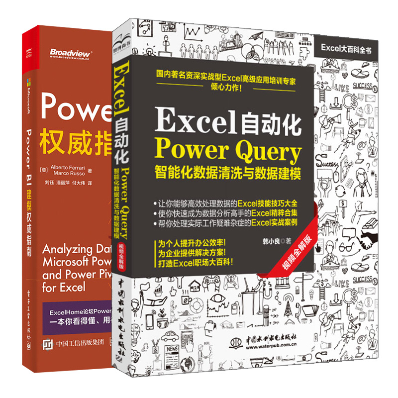 BI权威指南 共2本 BI操作基础入门 Excel自动化Power 指南 Power excel教程 Query智能化数据清洗与数据建模