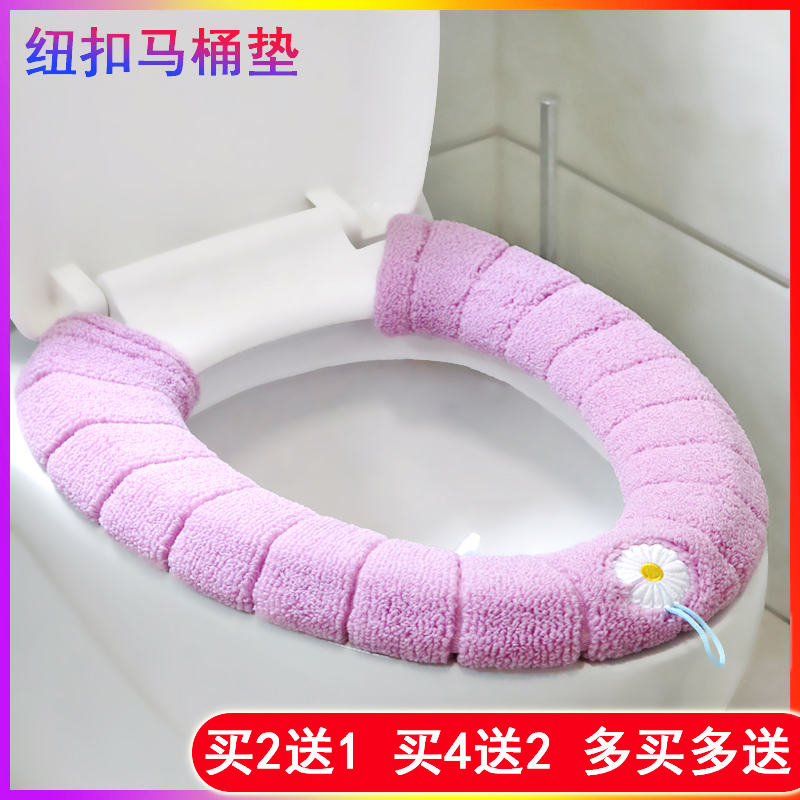 马桶坐垫家用冬季 加厚毛绒纽扣马桶垫子坐便套OUV加大号方形通用