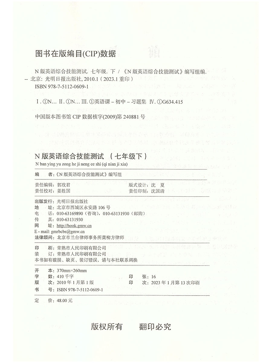 练习 yle试卷 英语综合技能测试 社 光明日报出版 上海初中英语教辅 听力扫码 7年级第二学期 七年级下册 YLE牛津N版 2023年新版