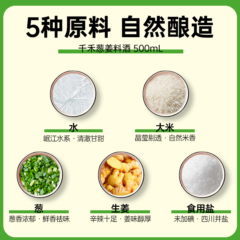 千禾调味品葱姜汁料酒家用去腥解膻提味增鲜红烧烹饪牛羊鱼