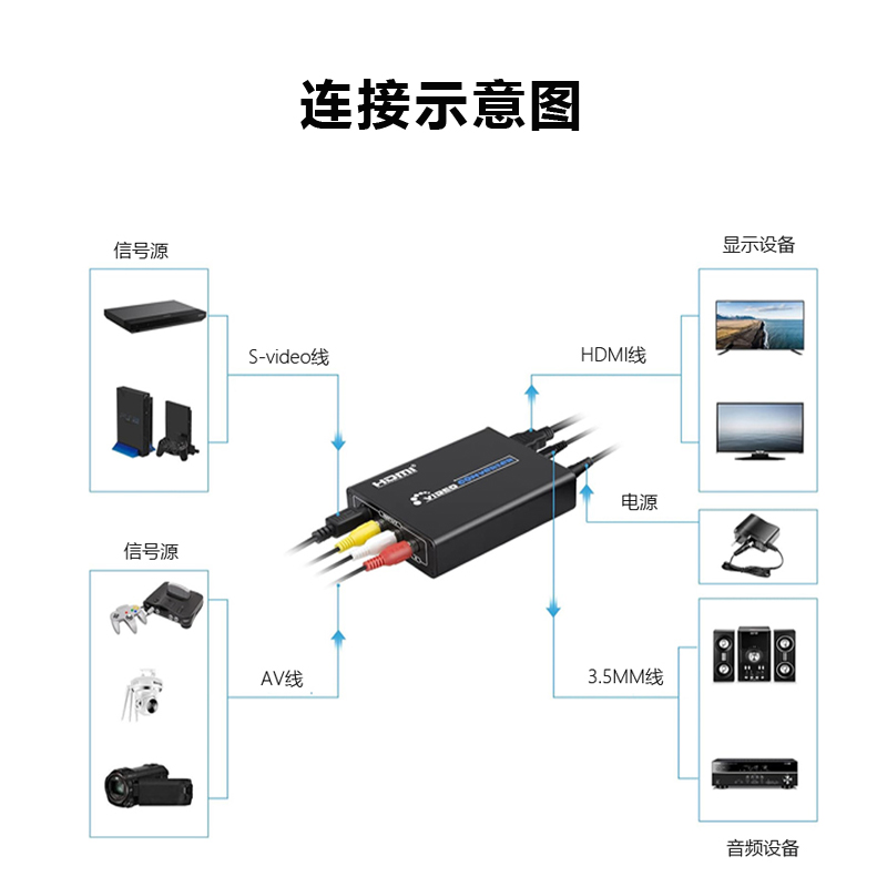 video可调分辨率 wii3色线机顶盒接液晶电视s av转hdmi转换器CVBS老设备S端子s video转高清显示器老设备PS2