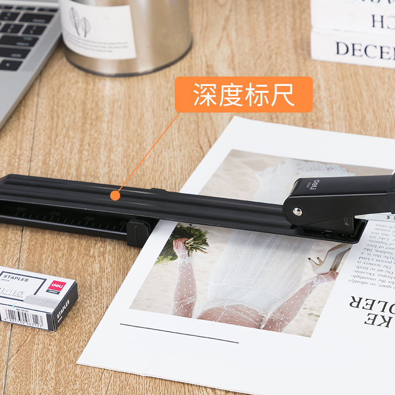 得力0334长臂订书机中缝钉书机A3纸装 订机报纸试卷加长型 订器骑马钉装