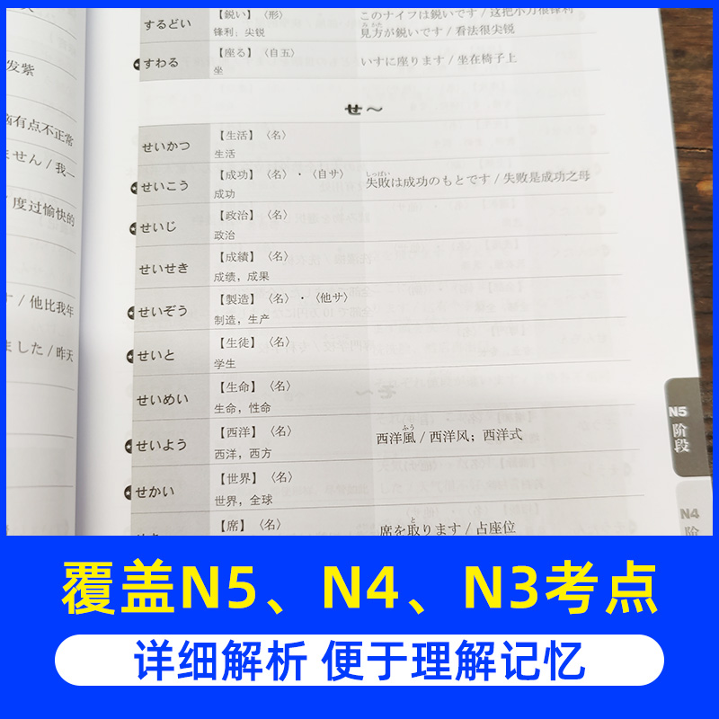 单词天天背 日语考试辅导书 第二版 日语三级四级五级法训练 日语初级自学教材 第2版 新日本语能力测试50天逐级突破N5N4N3