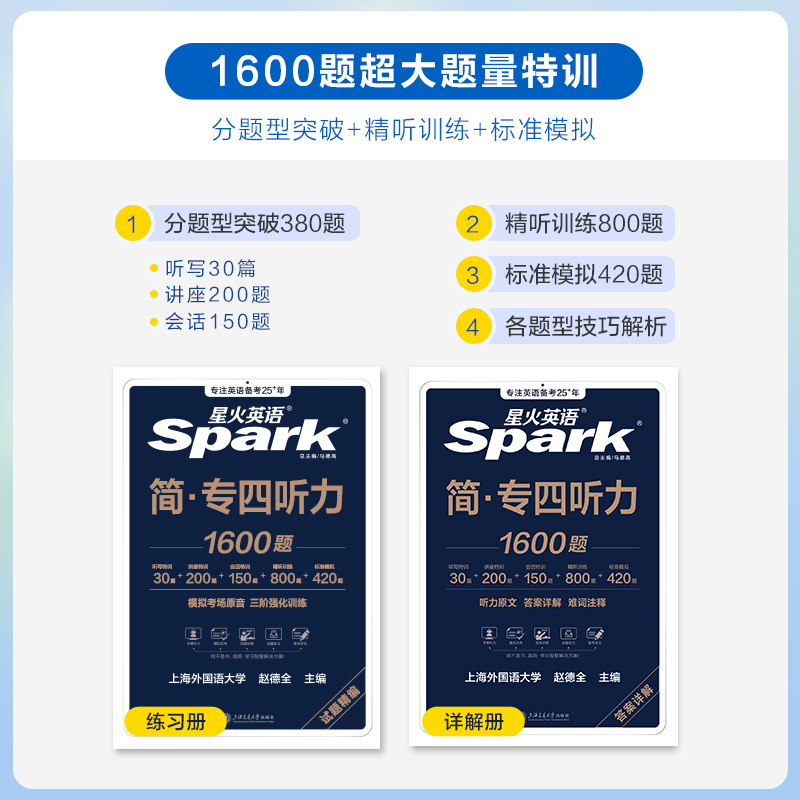 星火专四听力专项训练星火英语专四真题备考2026听力听写习题资料专业四级英语真题试卷tem4专业四级1600题阅读理解语法词汇书