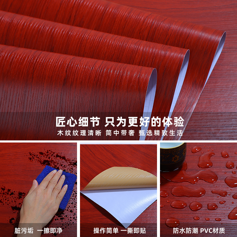 棕色木纹贴皮防水pvc自粘家具桌面柜子翻新贴纸木门破损修复门纸