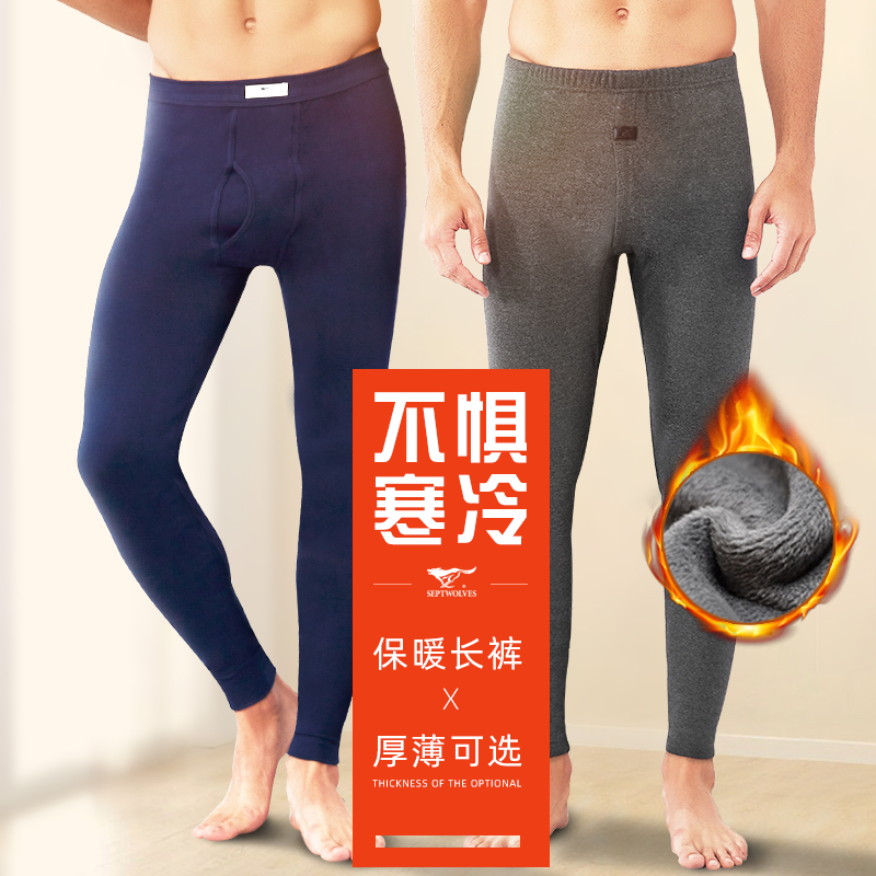 纯棉裤 男士 加厚打底内穿全棉毛裤 薄款 七匹狼保暖裤 加绒春秋季 秋裤