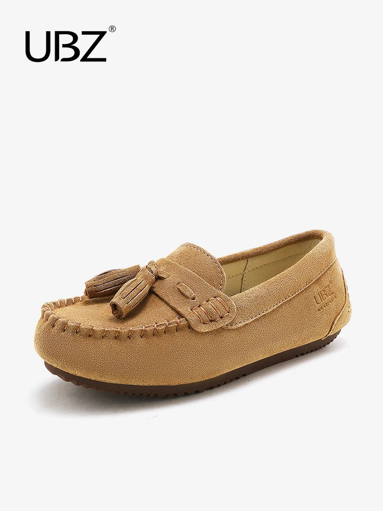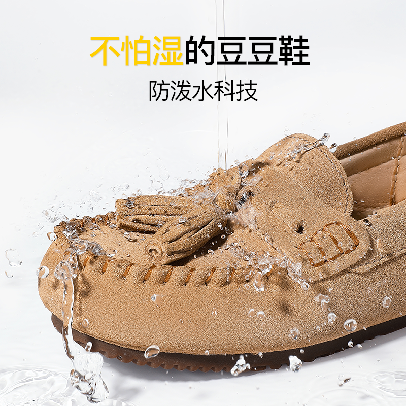 春秋懒人一脚蹬流苏复古真皮软底单鞋 UBZ 2025新款 女鞋 防水豆豆鞋