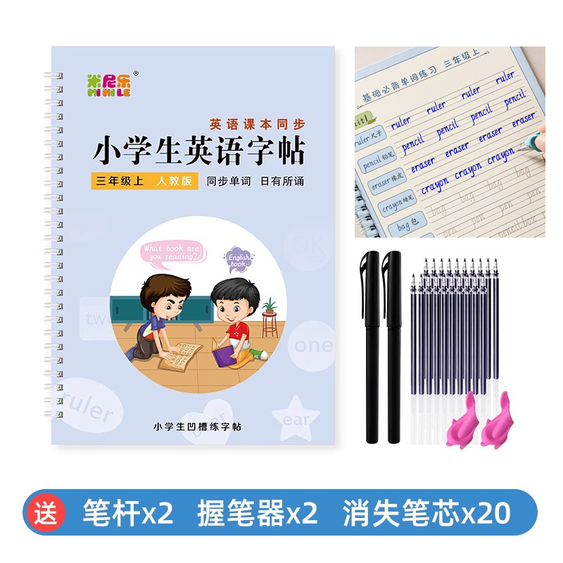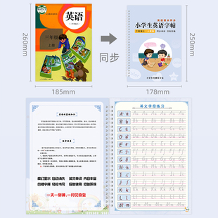 英语字帖凹槽三四五六年级练字帖小学生专用人教版 同步上册下册意大利斜体英文练字本描红本手写体儿童凹凸26个字母单词练习写字贴