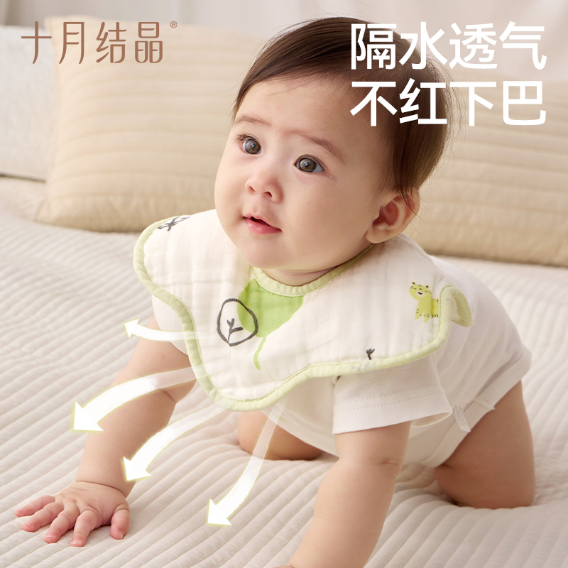 十月结晶宝宝围嘴吃饭口水巾纯棉围兜防水新生婴儿可旋转春秋季