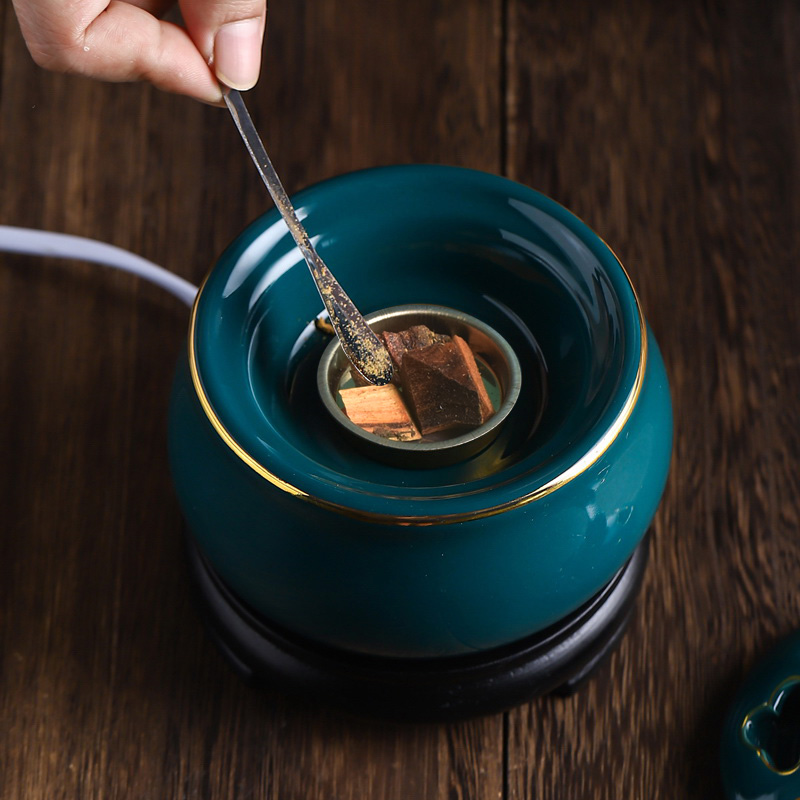 定时调温电香炉 电子沉香炉精油插电木粉彩描金 陶瓷香薰炉