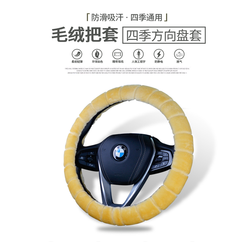 网红ins汽车方向盘套羊毛绒短毛冬季 专用把套男女通用型冬天保暖