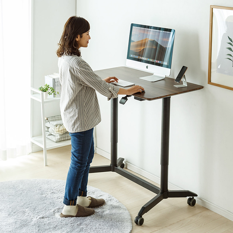 日本SANWA移动电脑桌人体工学站坐交替气杆升降办公写字学习桌子