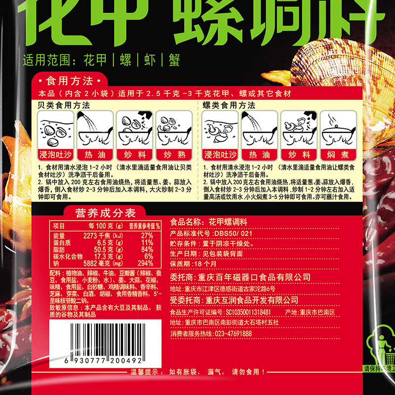 磁器口花甲调料180gx1袋麻辣炒花甲田螺调料香辣蟹螺丝辣炒海鲜