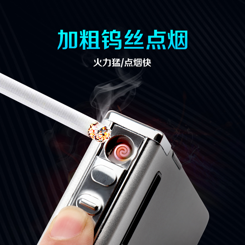 自动弹烟盒男便携20支装 防风打火机创意充电多功能一体火机盒空盒