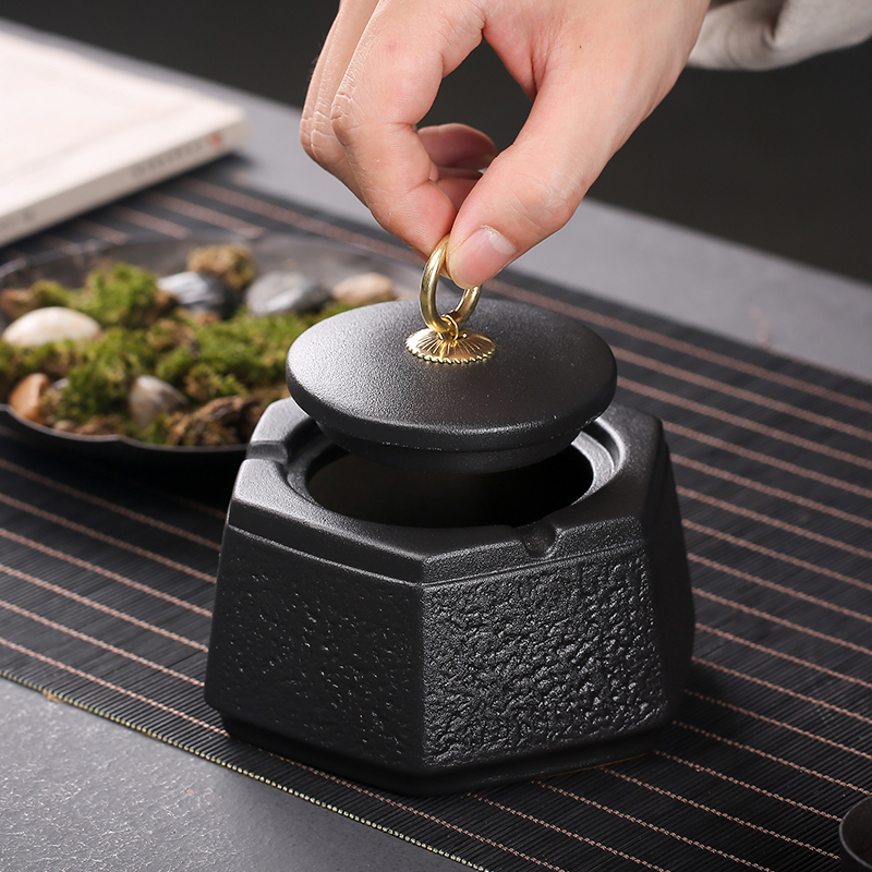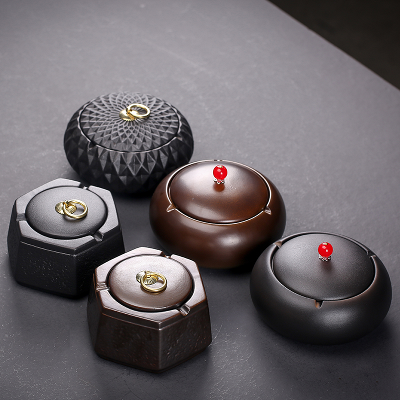 复古家用客厅茶几大号烟灰缸带盖酒吧办公室装 中式 饰用品 时尚 个性