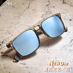 日本明星款 偏光驾驶防眩光太阳镜女 KHOTY手造板材透明炫彩墨镜男