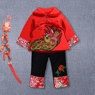 公主 一周岁礼服婴儿过年喜庆拜年服女童衣服套装 女宝宝唐装 秋冬款