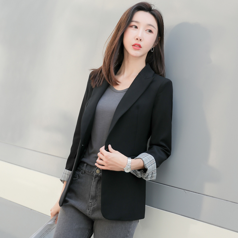 COCOBELLA高智感拼接人丝无领西装 女早秋通勤休闲气质外套SI533B