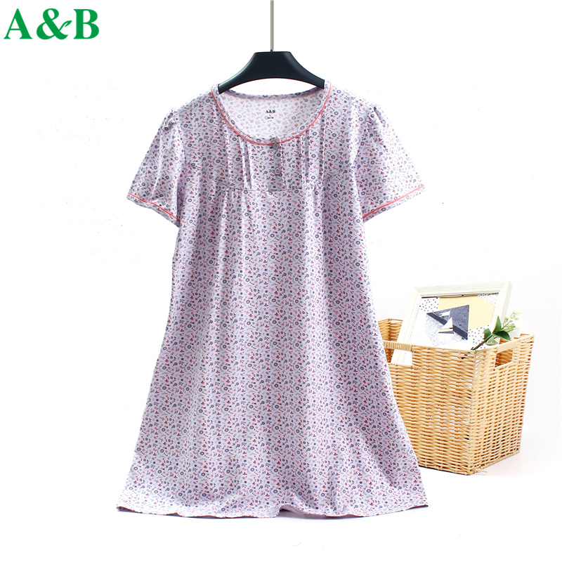 断码 睡衣女纯棉宽松妈妈全棉家居服裙子 清仓AB家居裙女士睡裙夏季