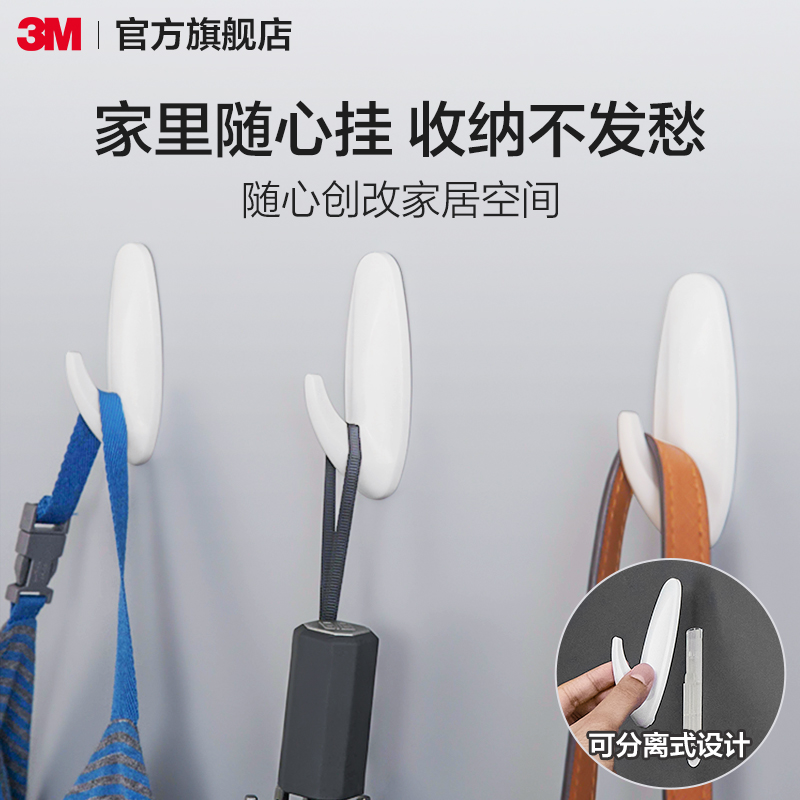 3M挂钩免打孔神器强承重贴墙强力粘胶防水厨房无痕粘钩大号乳胶漆
