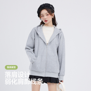 秋冬新款 开衫 修身 收腰上衣早秋穿搭美式 短款 灰色连帽卫衣外套女款