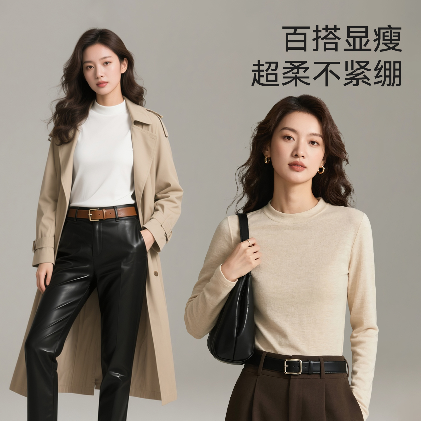 简云羊毛蚕丝德绒无痕半高领打底衫 中领秋衣女发热内衣保暖上衣HD