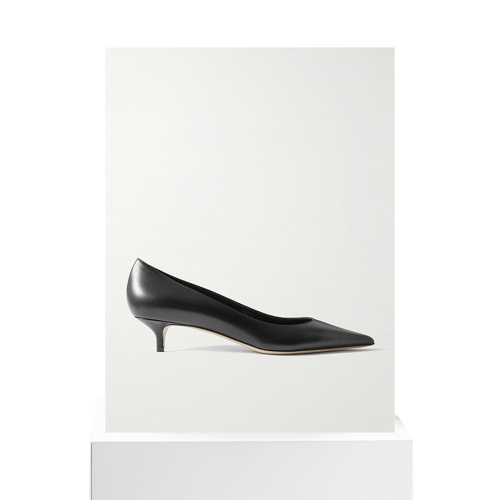 宽楦羊皮尖头细跟通勤浅口单鞋 大码 黑松露 秋冬女鞋 7or9黑色高跟鞋