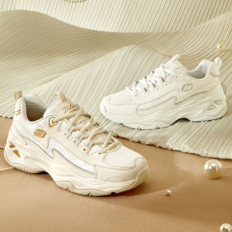 熊猫鞋 小白鞋 增高老爹鞋 秋季 皮面运动鞋 新款 正品 斯凯奇女鞋 休闲鞋