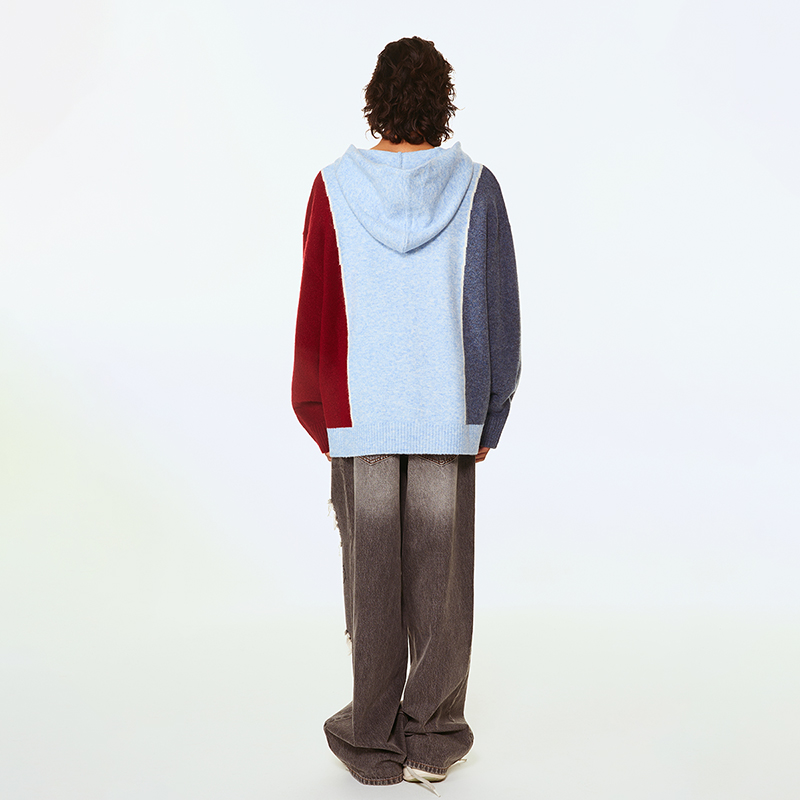 假两件拼接V字翻领毛衣18355703 女装 设计师款 佐丹奴撞色边针织衫