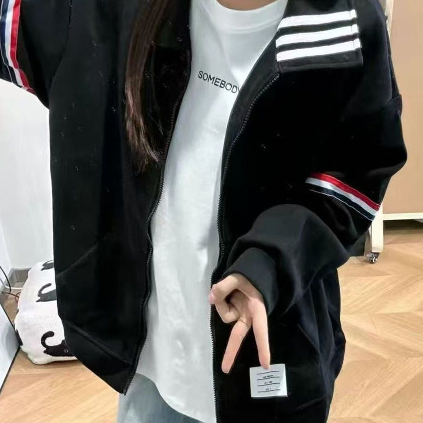宽松慵懒风oversize外套上衣男 卫衣女秋冬新款 美式 复古三条杠开衫