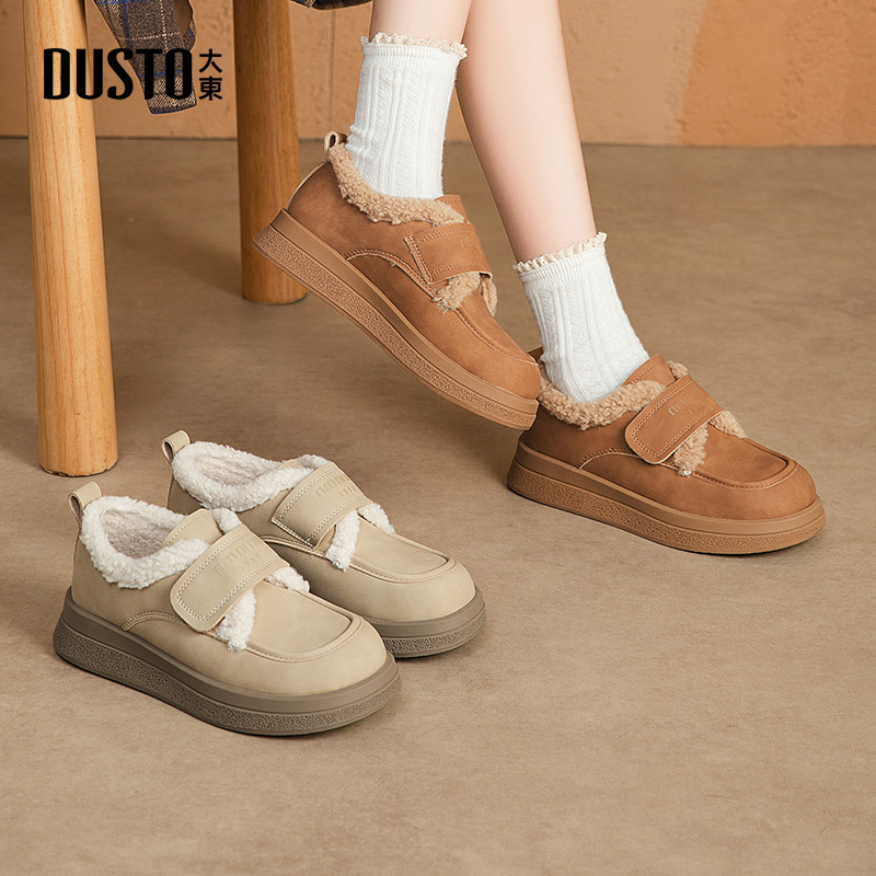 冬季 2025新款 女鞋 加绒乐福鞋 雪地靴女 大东厚底棉鞋 保暖毛毛鞋 女款