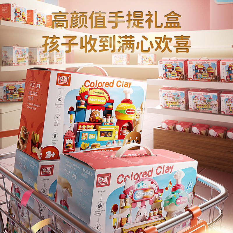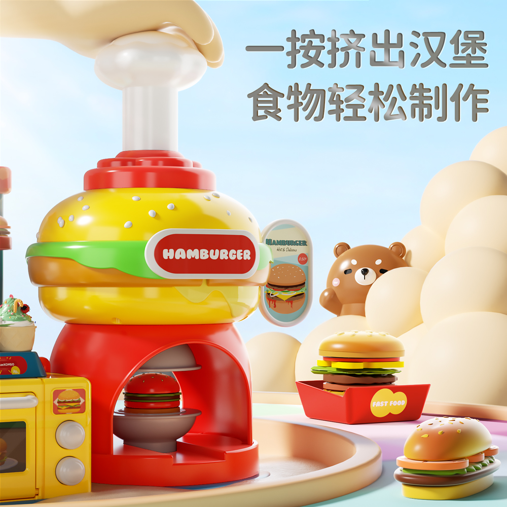 儿童环保彩泥汉堡机玩具手工DIY粘土工具无毒橡皮泥模具套装 女孩