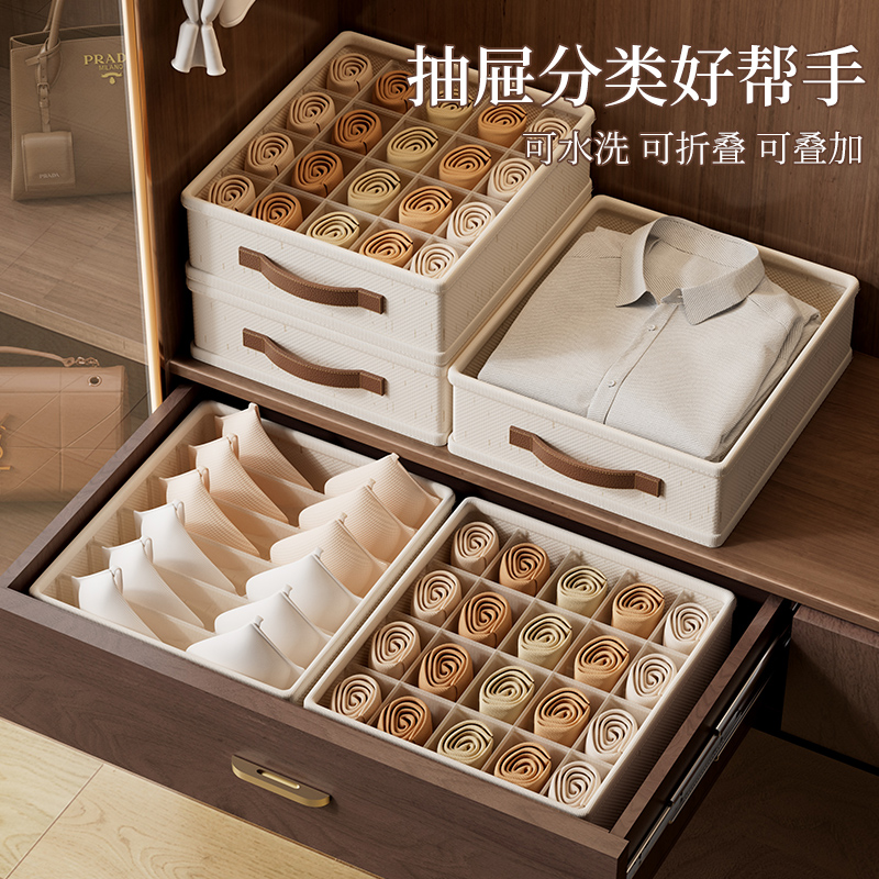 天山棉麻内衣内裤 收纳盒放袜子贴身衣物收纳神器抽屉三合一整理盒
