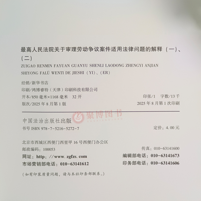 社 2025年9月1日起施行劳动争议司法解释二 法治出版 解释一二 32开单行本 最高人民法院关于审理劳动争议案件适用法律问题