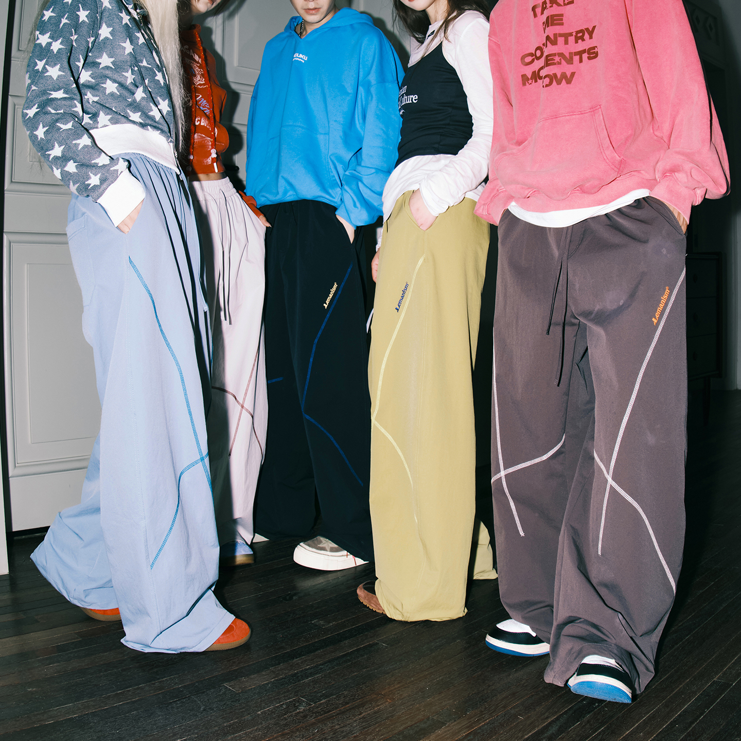 裤 lemanism美式 情侣款 男2025新款 子 潮流撞色线条字母直筒休闲裤