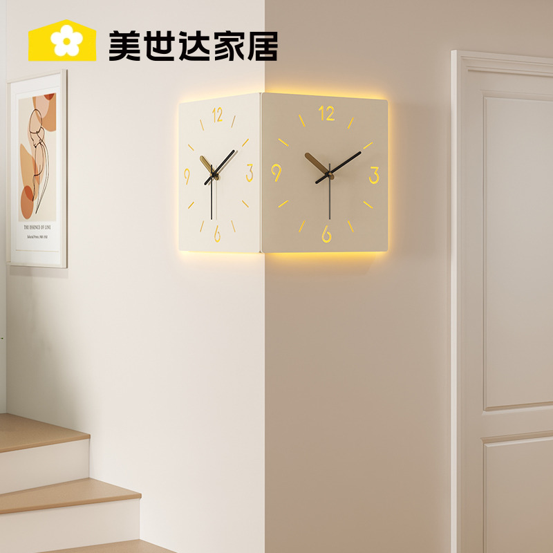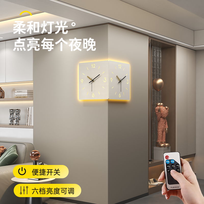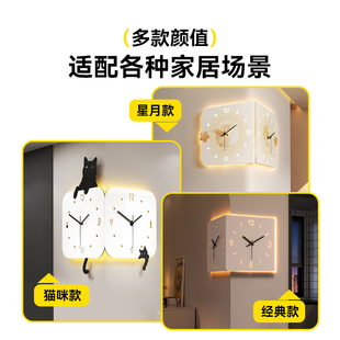 双面转角挂钟2025新款 客厅现代简约拐角钟表挂墙创意时钟灯万年历