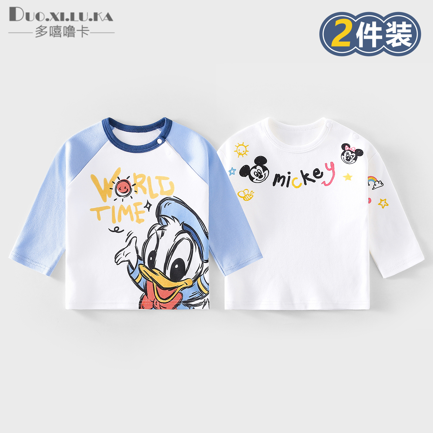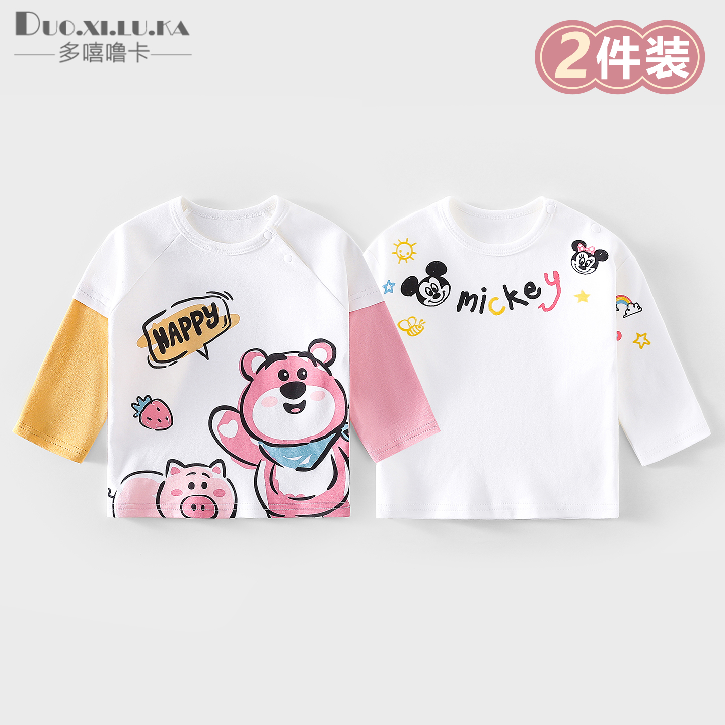 婴儿纯棉上衣打底衫 两件 春秋装 t恤女童男童2025新款 儿童宝宝长袖