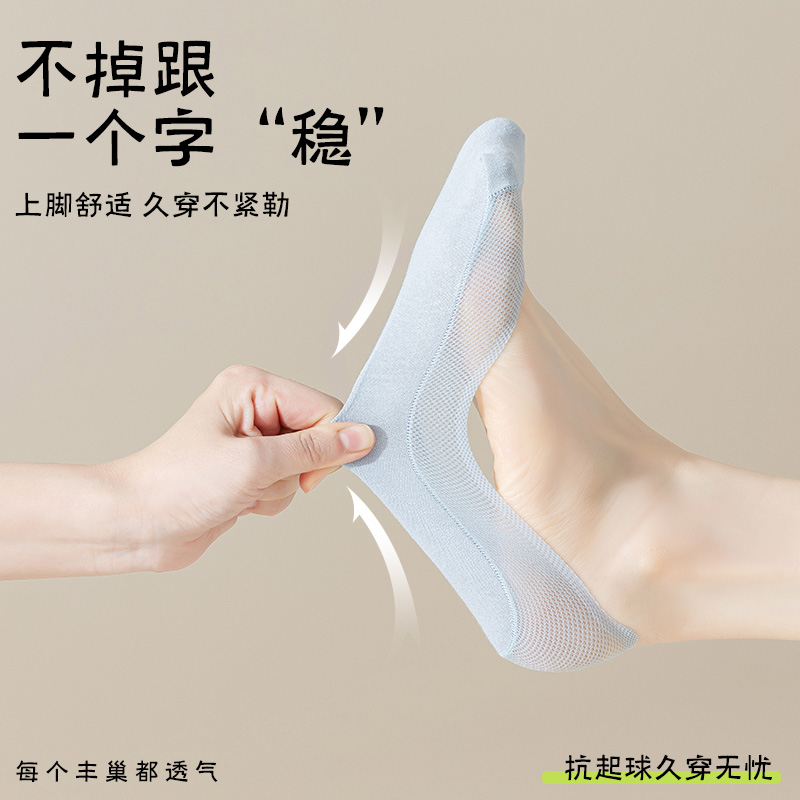 高跟鞋 袜子薄款 袜子 冰丝隐形袜棉制底防滑不掉跟浅口鞋 船袜女夏季