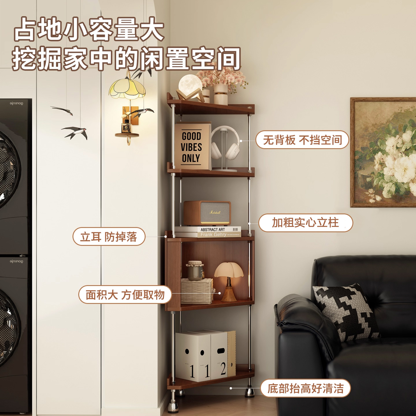 转角置物架实木落地墙边角收纳柜客厅三角柜子餐厅拐角书架储物柜