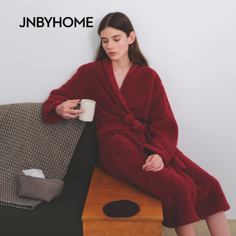 JNBYHOME江南布衣25年秋男女长袖 浴袍 系带睡袍柔软泡泡绒居家长款