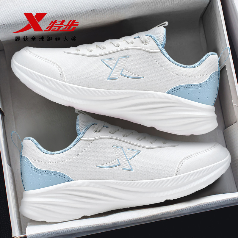 休闲鞋 软底轻便白色跑步鞋 女 官方旗舰店初中生皮面运动鞋 特步女鞋