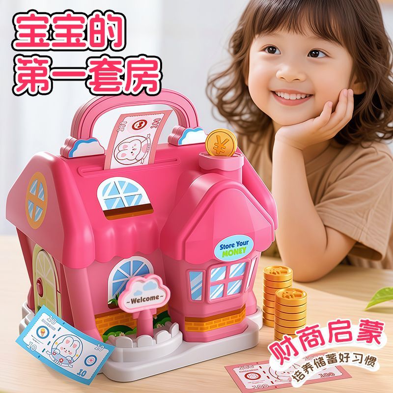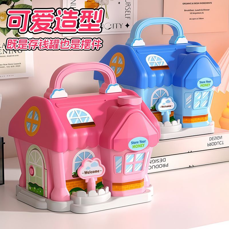 房子存钱罐女孩子男孩小别墅新款 带钥匙大容量零钱箱压岁钱储蓄盒