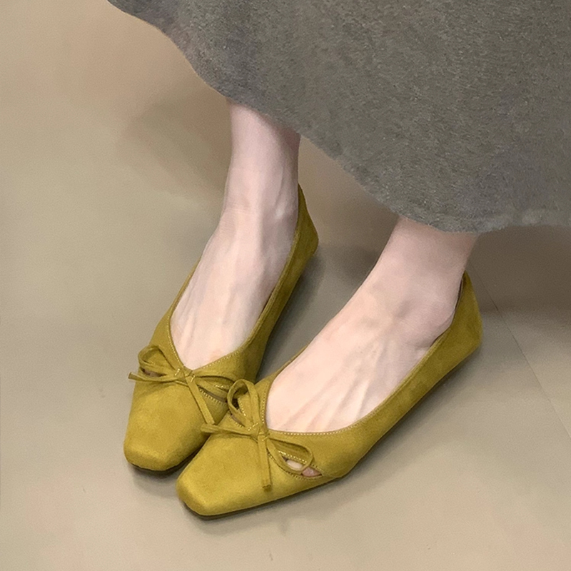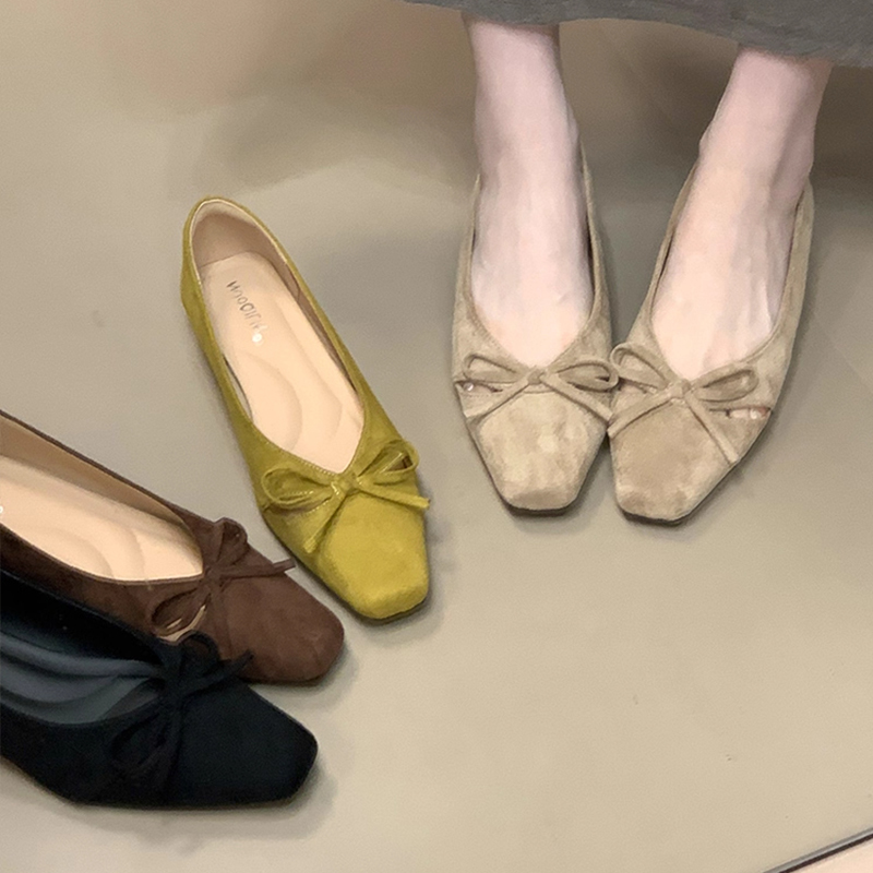 平底一脚蹬通勤芭蕾舞女鞋 新款 女2025秋季 方头蝴蝶结百搭浅口单鞋
