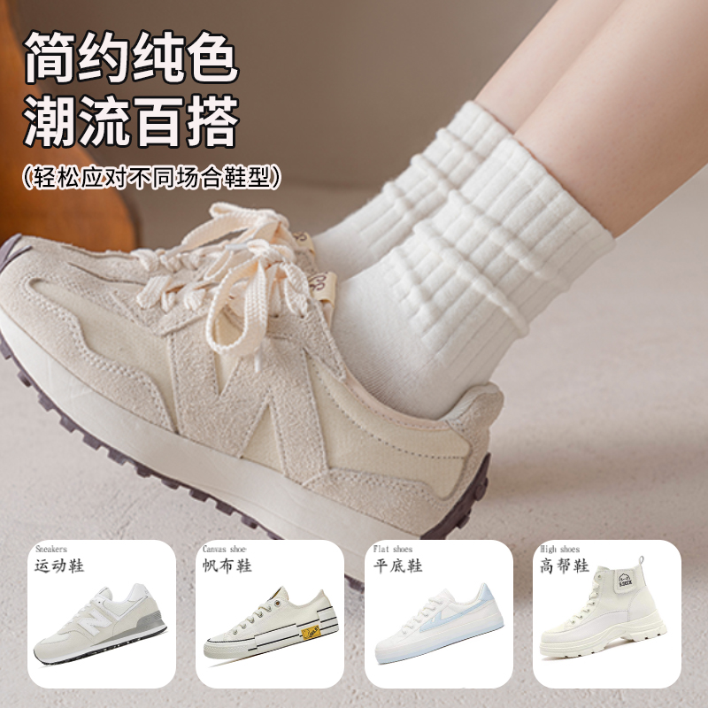 乐福鞋 筒棉袜防臭配小皮鞋 月子袜无骨堆堆袜 黑色中秋冬季 袜子女款