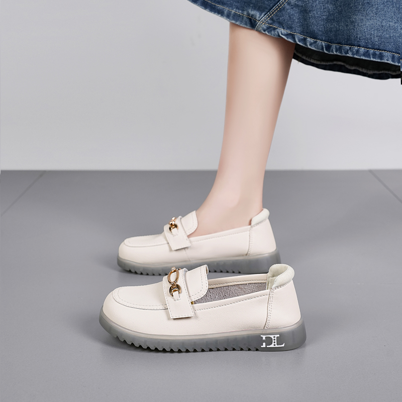 女秋季 2025新款 大码 百搭妈妈真皮女士浅口乐福鞋 超软豆豆鞋