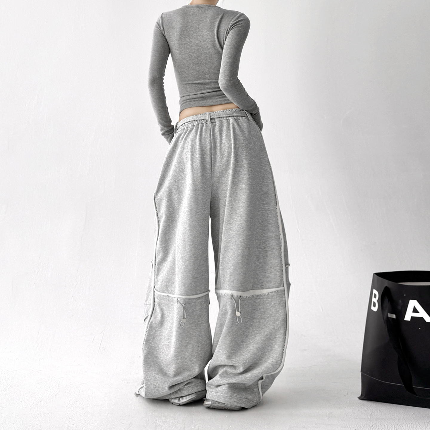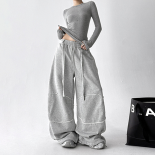 宽松显瘦百搭超火春秋阔腿卫裤 新款 女2025秋季 原创设计灰色休闲裤